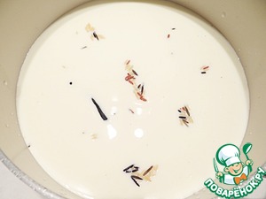 Добавляю молоко, соль, стручок ванили и довожу до кипения. Огонь убавляю и готовлю кашу при закрытой крышке примерно 35 минут, время от времени помешиваю. Даю каше остыть.