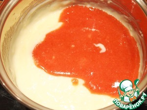 Добавить клубничное пюре и размягченное сливочное масло к остывшему крему. Хорошо перемешать миксером. Соус готов.