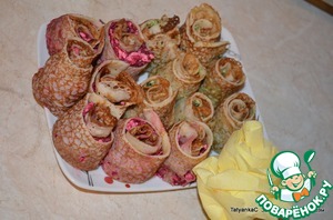 Рецепт «Закусочные розы из блинов со шпинатом»: