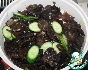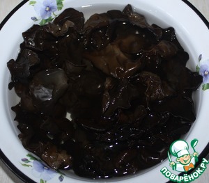 Замочить грибы в теплой воде (около 40 градусов) на 1 час. Промыть в проточной воде. Залить холодной водой и поставить в холодильник на несколько часов (можно на ночь). Это самый правильный способ восстановления сухих древесных грибов, но китайцы часто просто держат час в теплой воде, промывают и сразу готовят. Ни в коем случае нельзя заливать эти грибы кипятком. Они от этого потеряют свою хрустящую фактуру.