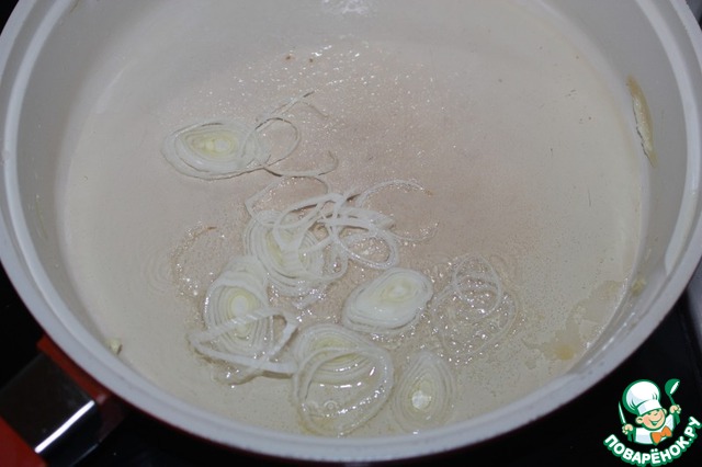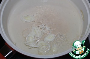 Разогреть масло, посолить и немного зажарить лук-порей