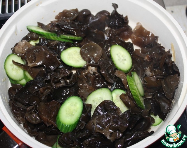 Продолжаю переводить и пробовать рецепты с китайского кулинарного сайта. Сегодня приготовил теплую закуску с черными древесными грибами