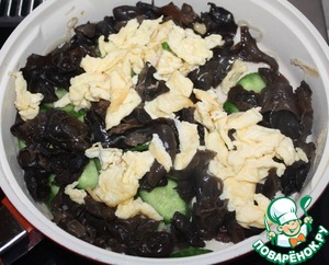 Рецепт «Древесные грибы с омлетом и огурцами»: