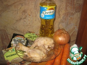 Лук нарезать, морковь натереть, куриное мясо порезать на кусочки