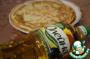 Испеките при помощи масла "Олейна" блинчики, по любому вашему любимому рецепту.