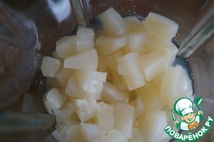 Консервированный ананас вместе с сиропом поместите в блендер,