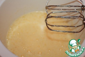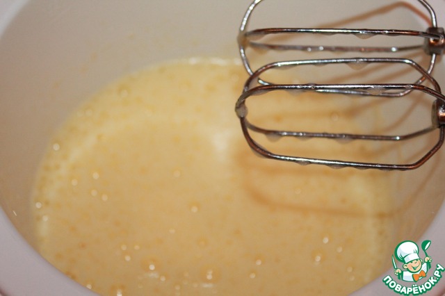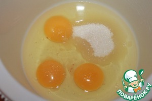 Яйцо и желток взбиваем венчиком. Постепенно вводим в нашу смесь, постоянно быстро помешивая.