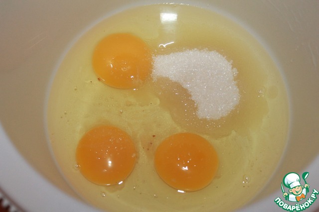Яйцо взбиваем с сахаром и солью. Можно сделать это венчиком, но лучше миксером.