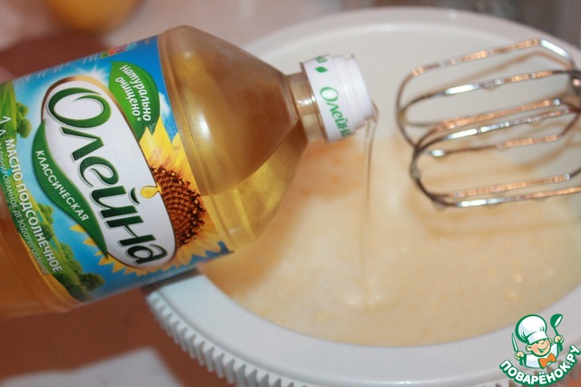 Добавляем растительное масло ТМ "Олейна" классическое. Взбиваем.
