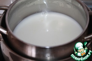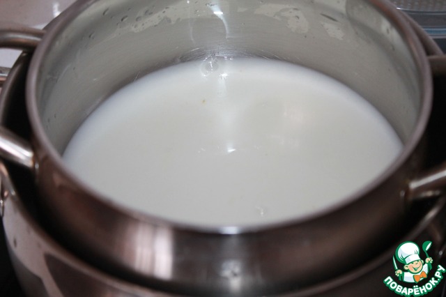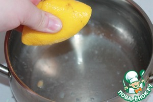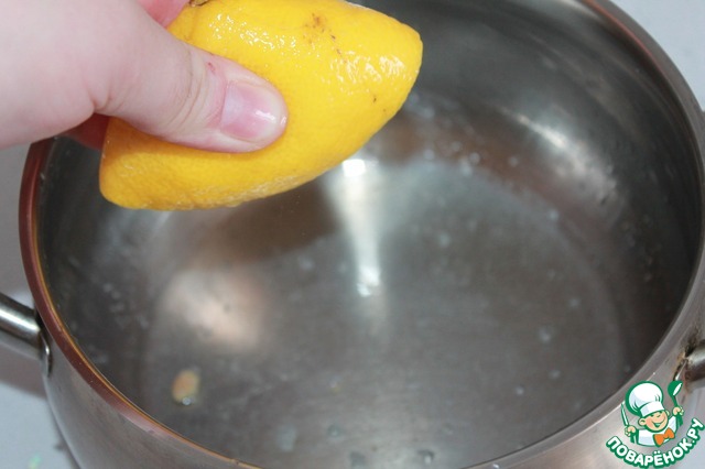 В воде растворяем крахмал. Соединяем лимонный сок, крахмал и сахар. Я использую кукурузный крахмал, но можно и картофельный. Ставим лимонную смесь на водяную баню.