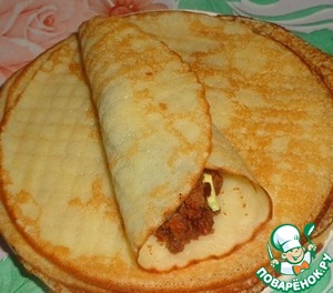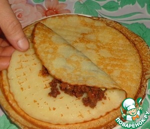 На середину блина выкладываем начинку и заворачиваем один края, потом...