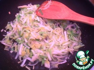 • Приступаем к начинке. Грибы помыть и почистить. У лука-порея отрезать только белую часть.