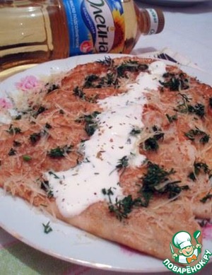 • Украсила тертым сыром, зеленью, сливками и специями. Эта красота досталась мужу, который «круги наматывал» вокруг кухни в ожидании готовых блинчиков.