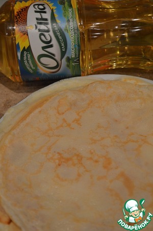 Выпекаем блинчики на хорошо разогретой сковороде с маслом Олейна.