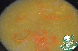 В сковороде распускаем сливочное масло, добавляем коричневый сахар, апельсиновый сок и цедру. Доводим до кипения.