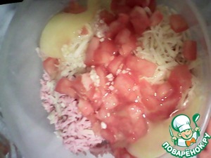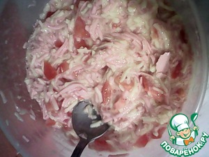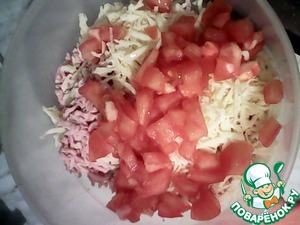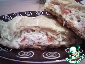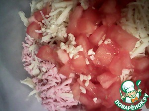 Рецепт «Слойка с колбасой, помидором, сыром и чесноком»:
