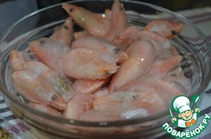 Если коктейль из морепродуктов замороженный необходимо залить горячей водой и дождаться, когда разморозится, откинуть на сито, чтобы стекла вода. Так как у меня готовый маринованный, то он уже готов к употреблению.