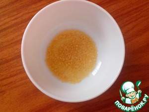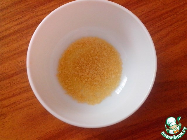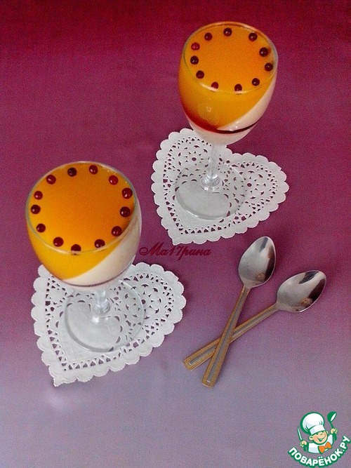 Готовим апельсиновое желе. Желатин залить водой и оставить для набухания. Из апельсинов выжать сок (если апельсины кислые добавить сахар по вкусу, у меня получилось 250 мл), добавить растопленный и остывший желатин, перемешать. Разлить по бокалам, убрать в холодильник.