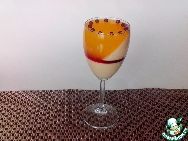 После того, как вишневое желе застынет, вылить остатки бананового желе в бокал под углом (застывшее желе растопить на маленьком огне, постоянно помешивая) и положить с наклоном в холодильник. Я для этого использовала ячейку из под яиц.