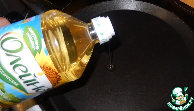 • Наливаем масло на сковороду и разогреваем ее.