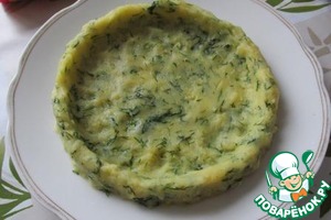 Остывшее картофельное пюре выкладываем на плоскую тарелку и формируем лепешку с бортиками.