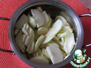 Яблоки очищаем от кожуры и сердцевины, разрезаем на дольки.