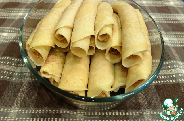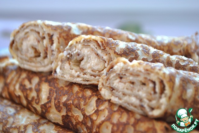 Рецепт «Блинчики с начинкой из сгущенки и творога»: