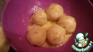 Растительное масло выливаем в миску и ставим на плиту на максимум. Яйца разбиваем в миску и взбалтываем. Из картофельного пюре формируем колобки. Лучше это делать, смоченными в воде, руками. Полученные колобки опускаем в миску со взбитыми яйцами.