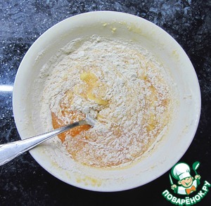 Затем постепенно вмешиваем муку. Размешать до однородности.