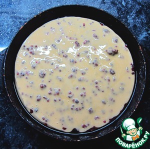 Заливаем оставшимся тестом нашу начинку, так чтобы все ягоды были покрыты тестом. Ставим в духовку, и выпекаем примерно 20-25 минут до образования золотистой корочки.
