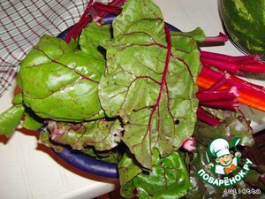 Тем временем приготовить начинку: свекольные листья хорошо промыть, обсушить полотенцем,