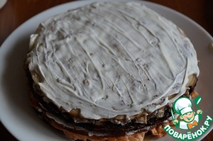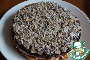 Далее по оригинальному рецепту шел слой капусты, который нужно было сверху смазать тонким слоем сметаны.