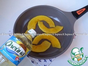 Обжарить пластинки на растительном масле «Олейна». Сначала с одной стороны, потом с другой, присыпав тыкву сахаром.