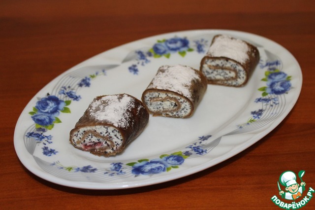 Ну что сказать - вкусно. Шоколадные блины с творожно-маковой начинкой