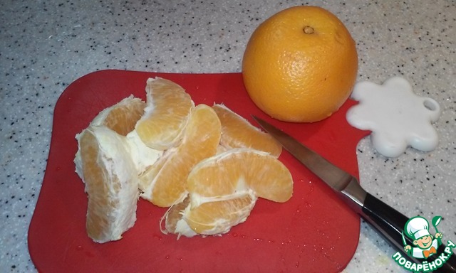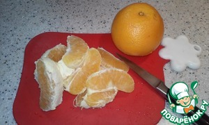 Очистить апельсины, разобрать их на дольки и разрезать каждую на 4-5 частей.