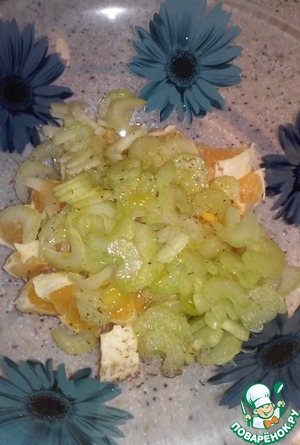 Смешать нарезанные апельсин и сельдерей, полить заправкой из оливкового масла и лимонного сока.