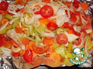 Рецепт «Цыпленок с овощами, тушенный в фольге»: