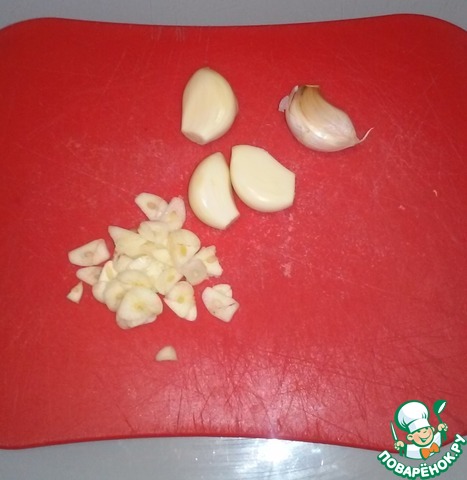 Чистим чеснок и мелко его нарезаем.