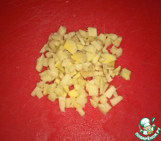 Измельчаем имбирь.