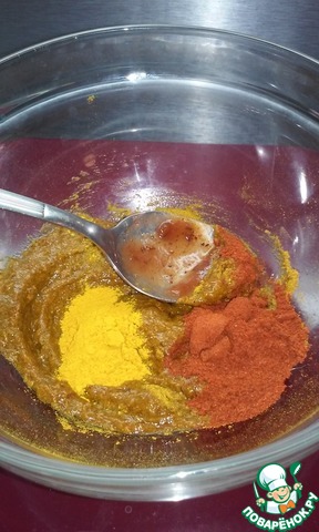 Добавляем куркуму и паприку.