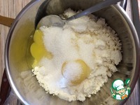 Смешиваем творог, яйца, сахар (кто любит послаще могут добавить и три ложки),