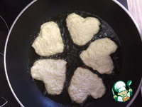 Лепим из творожной массы вот такие вот сердечки (это необязательно, конечно, можно и обычные лепешки). Масса прилипает к рукам и очень нежная, поэтому делаем все максимально аккуратно. В то же время если добавить больше муки, то потеряем неповторимый нежный вкус -