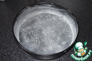 Форму смазать сливочным маслом и посыпать мукой. Хорошо распределить муку по форме, лишнюю высыпать.