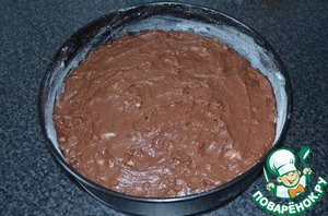 Смешать масляно-яичный крем с мукой, разрыхлителем теста, орехами, какао, ванильным сахаром. Аккуратно перемешать ложкой.