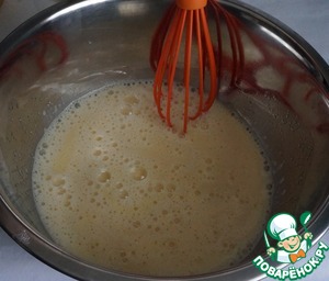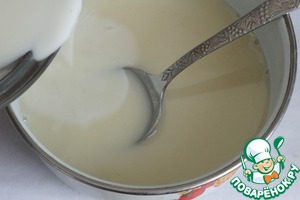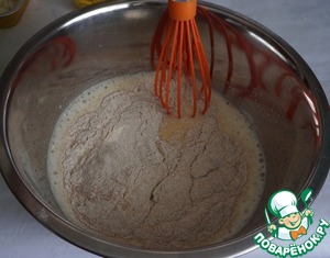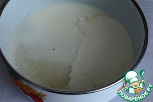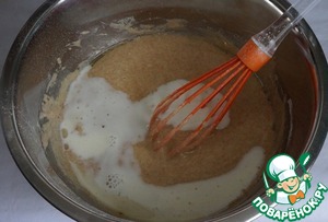 Постепенно вливать молоко, перемешивая. Оставить тесто постоять минут 30-40.