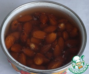 Миндаль залить кипятком, дать постоять 5-10 минут.