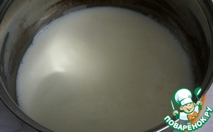 Вскипятить оставшиеся 200 мл. молока и тонкой струйкой постоянно помешивая влить к рисово-молочной смеси. Хорошо перемешать.