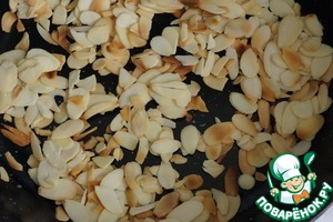 Миндальные лепестки слегка обжарить на сухой сковороде.