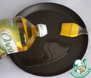 Займемся выпечкой блинов. Блинную сковороду смажем растительным маслом Олейна. Поставим разогреваться.