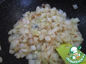 В том же масле обжарить лук до прозрачности, подсолить. К луку добавить соус Табаско, все перемешать. Добавить чеснок, перемешать и сразу снять с огня.